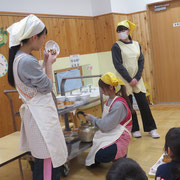 ワクワク食育活動で月に一度、ハンバーグ、団子、ジュース、など子ども達の希望を聞いて、みんなで作っていただきます。